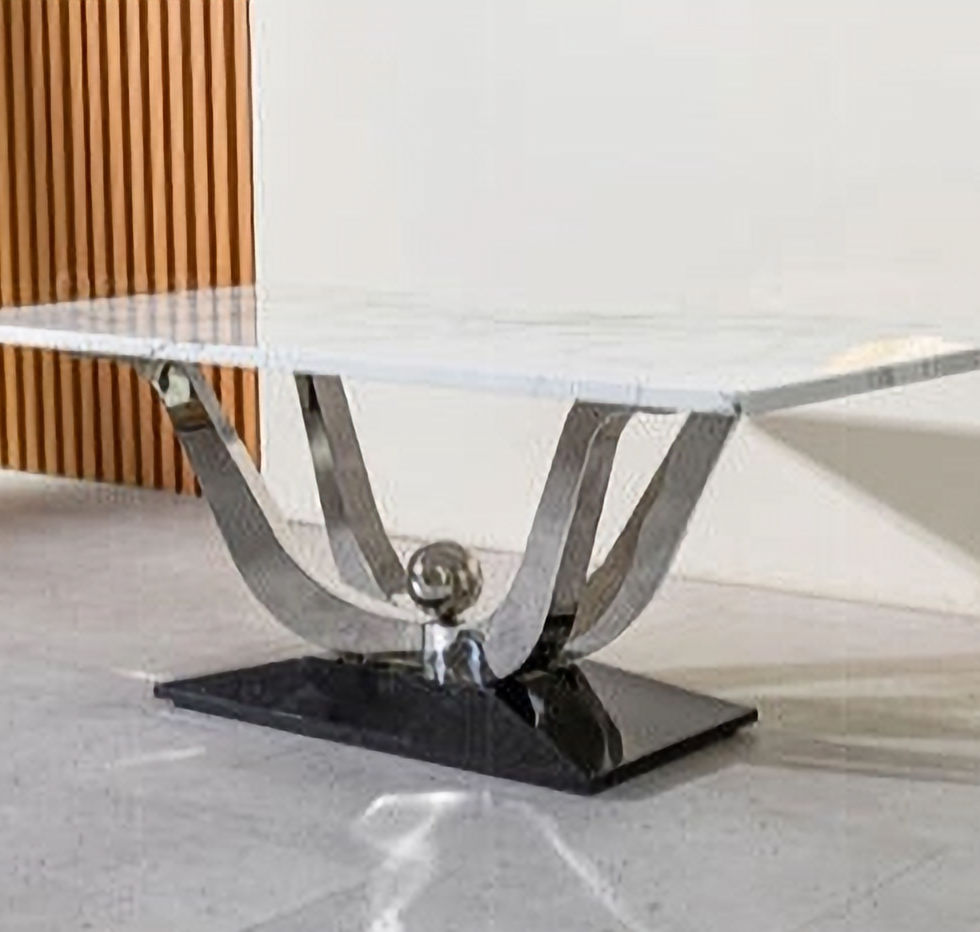 Elevate your dining experience with this luxurious 6-8 seater steel dining table set, featuring a sturdy stainless steel frame and a sleek marble top. Perfect for large families, restaurants, or hotels, this set is designed to provide comfort and style. With its high-quality materials and durable construction, this dining table set creates a warm and inviting atmosphere.